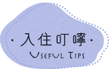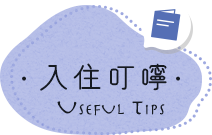 | ● | 入住時請記得出示您的證件,以便我們登記,在辦理登記的同時,也請您將住宿費一併繳交。 |